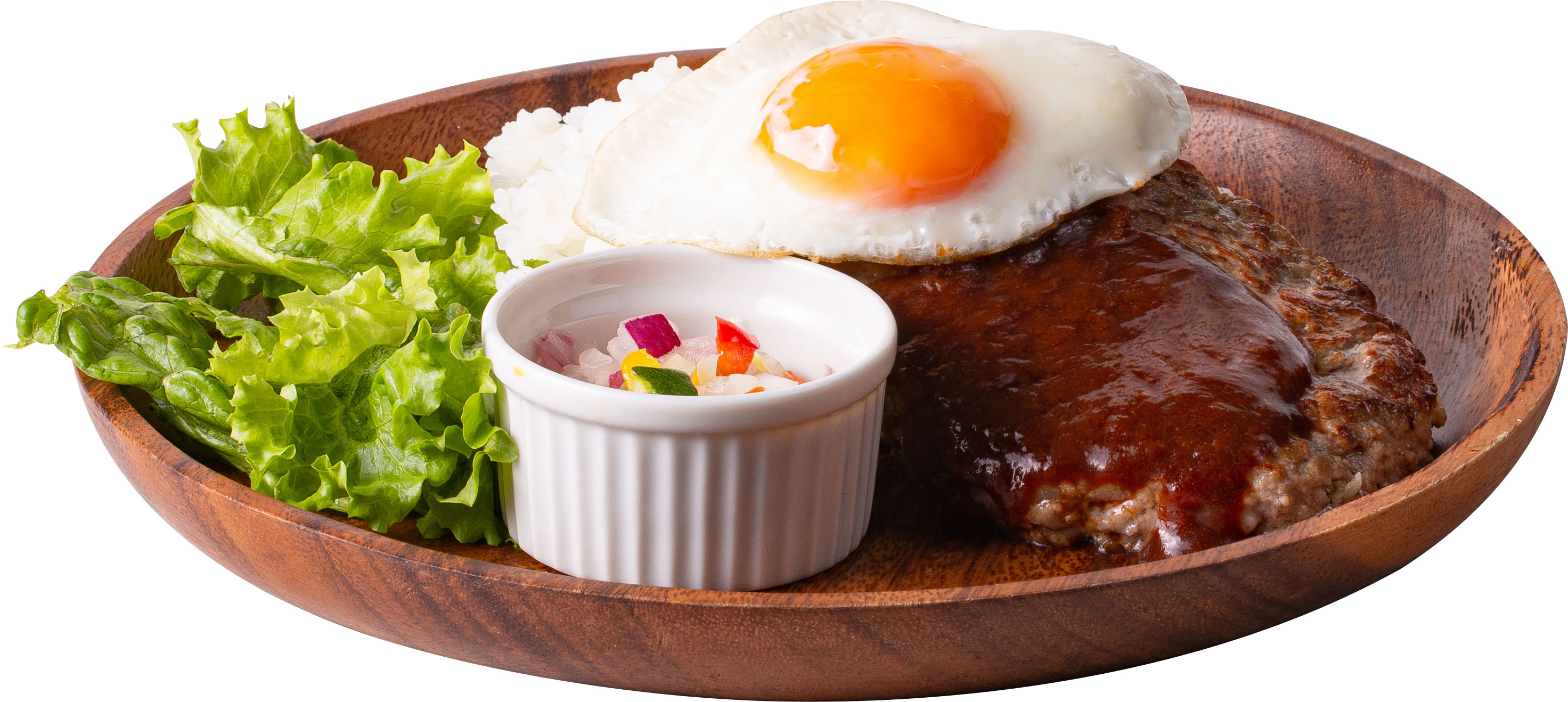 ハンバーグに王道のエッグ×デミグラスソースの組み合わせです。